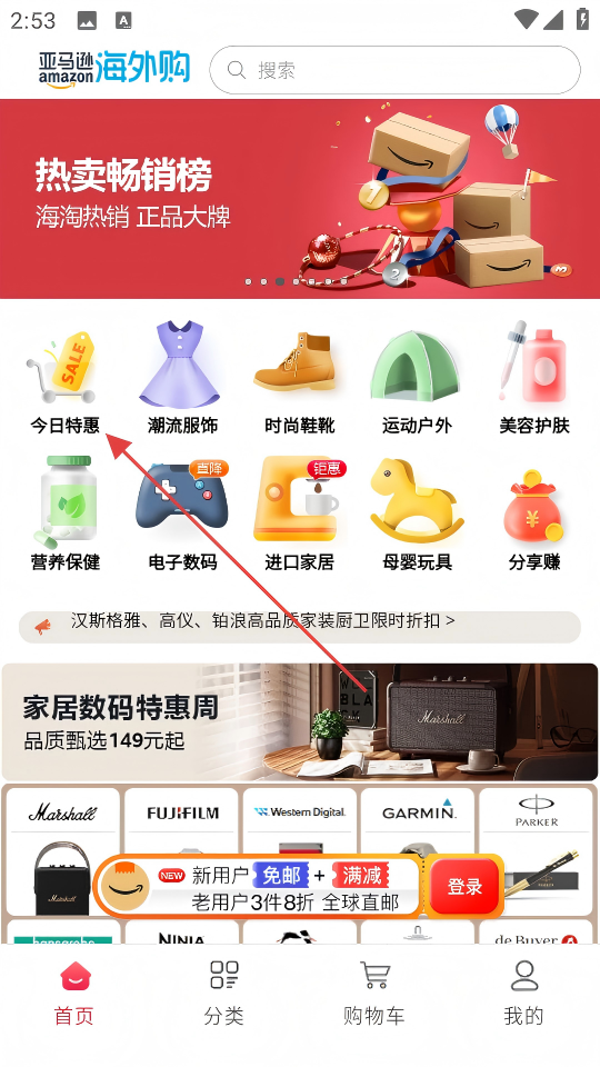 1、在首页点击【今日特惠】,进入今日特惠页面。