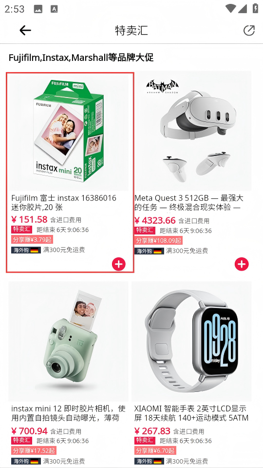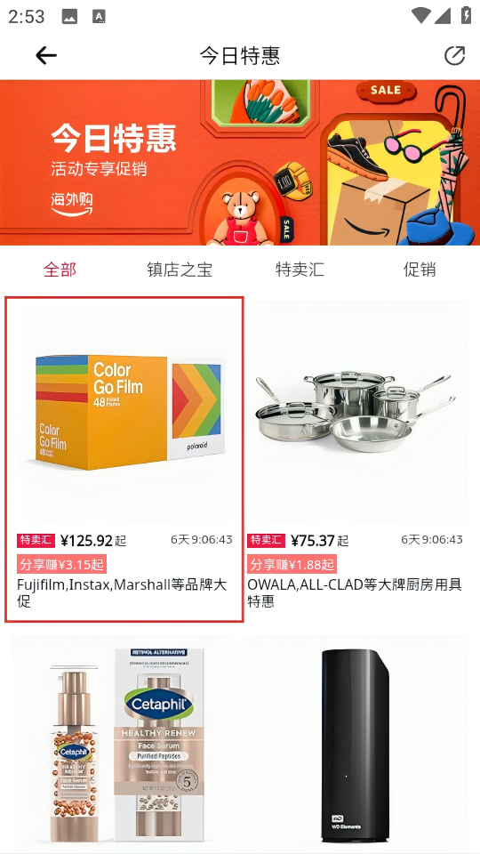 3、在特卖汇页面选择具体商品,进入商品详情页面。