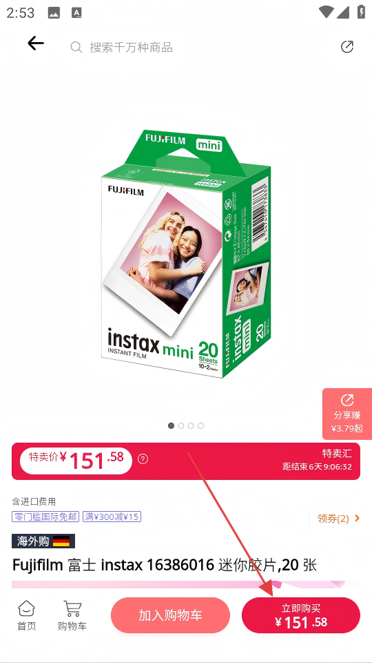 4、在商品详情页面点击【立即购买】,即可进入后续购买流程。