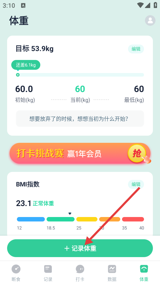3、在体重页面中,点击【+记录体重】按钮。