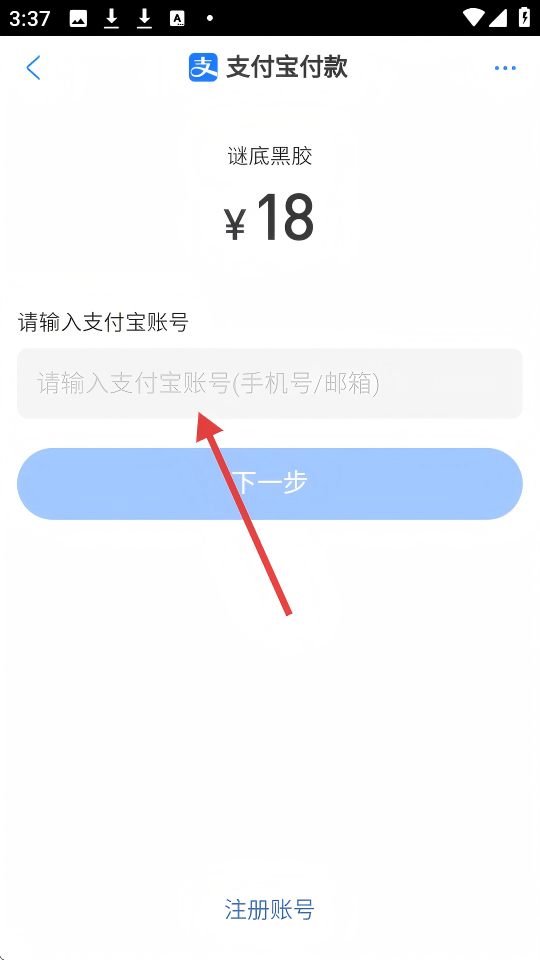 4、在输入框中输入支付宝账号,然后点击下一步完成支付。