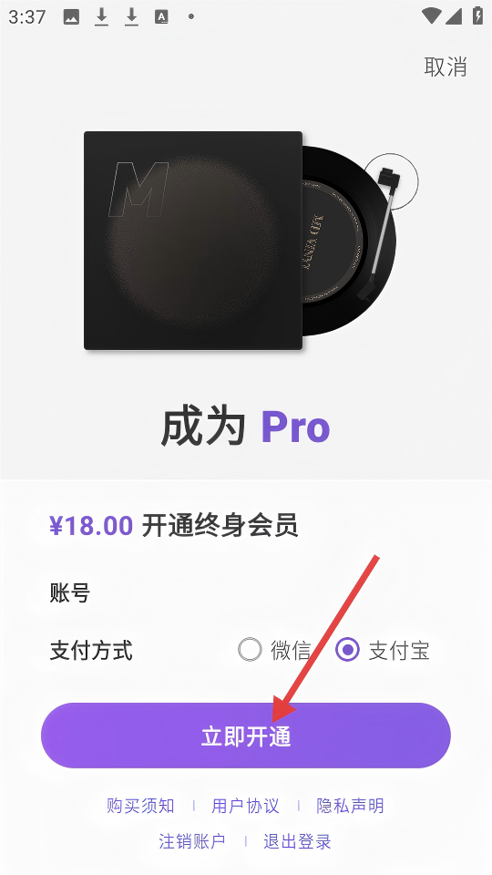 2、点击【成为谜底黑胶会员】按钮,进入会员开通页面。