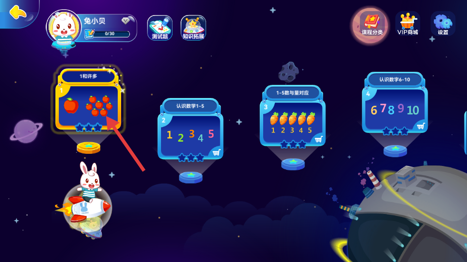 4、进入课程后即可开始学习,如通过观察小鸭数量来学习“1和许多”的数学概念。