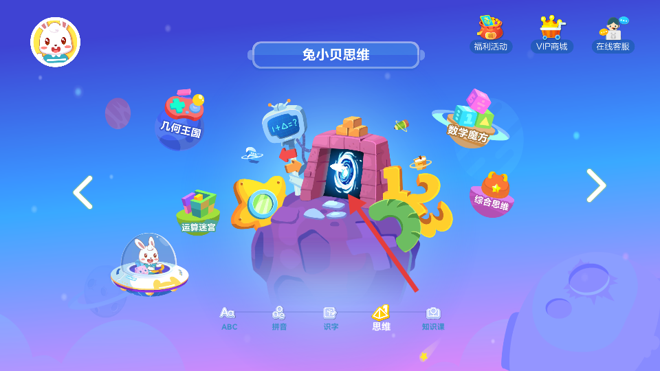 2、登录后点击【思维】板块,进入兔小贝思维页面。
