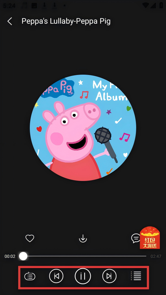 3、点击歌单中的【Peppa'sLullaby】,可播放该歌曲。