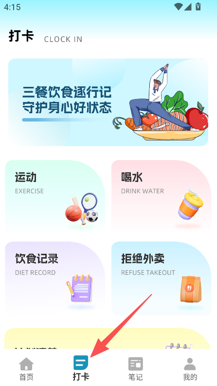 1、界面分类清,打卡板块功能分类明确,运动、喝水、饮食记录等板块一目了然,使用时快速找到所需功能。
