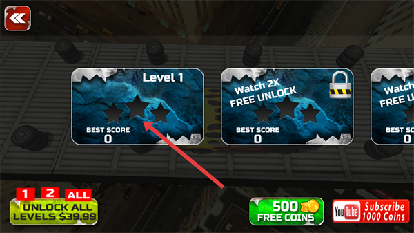 2、选择【Level-1】关卡开始比赛,积累分数解锁星星,后续可解锁更多关卡。