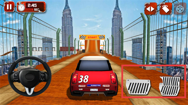 4、利用右下角踏板操作,油门加速、刹车减速,结合方向控制完成赛道挑战。