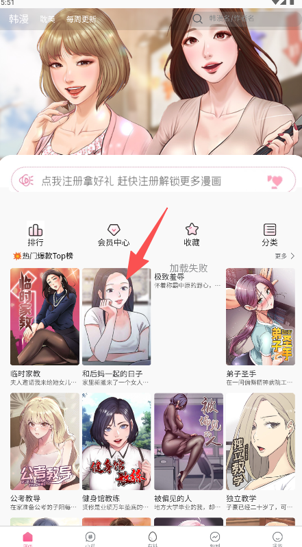 1、进入软件,可在热门榜单选择漫画,点击进入详情页。