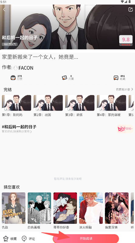 2、在漫画详情页,可查看章节列表,点击开始阅读。