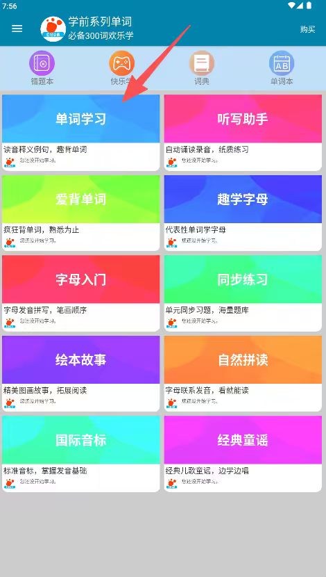 2、功能导航清,单词学习、听写、绘本等模块一目了然,家长孩子可快速找所需内容,操作便捷。
