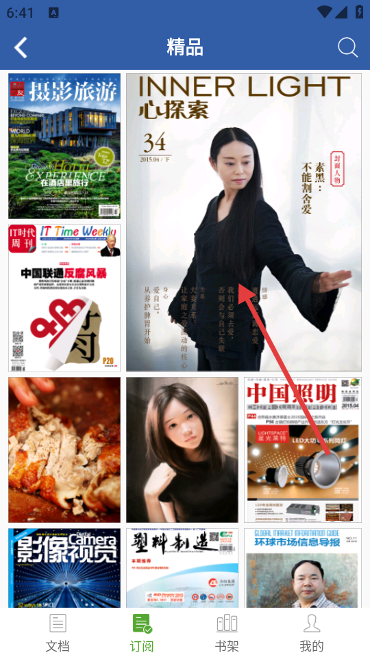 2、在订阅页面中,点击感兴趣的刊物封面,可进入其相关精品页面。