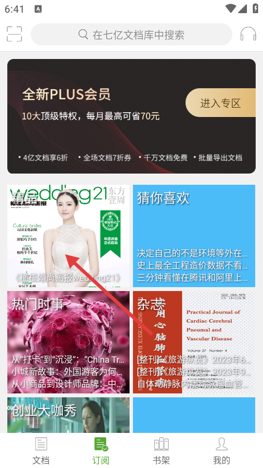 1、点击底部【订阅】按钮,可进入订阅页面查看各类推荐文档及刊物。