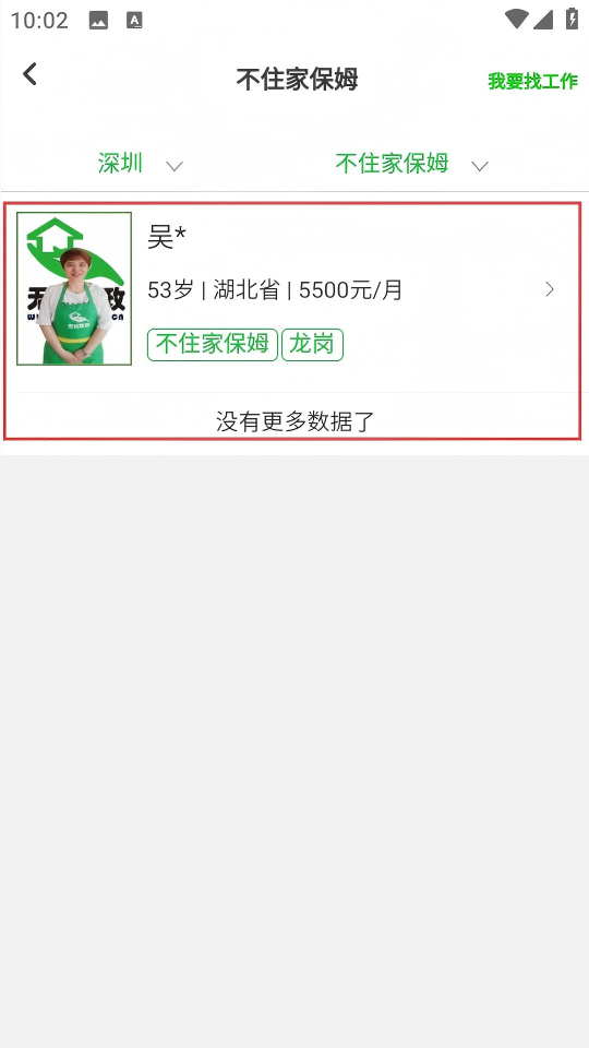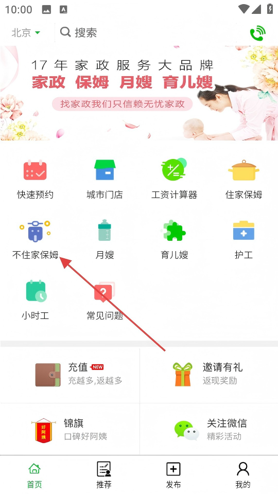 1、在首页点击【不住家保姆】,进入不住家保姆列表页面。