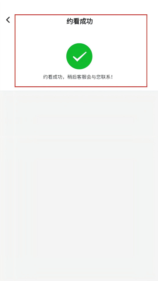 4、提交后将显示“约看成功”,稍后客服会与您联系,完成约看流程。