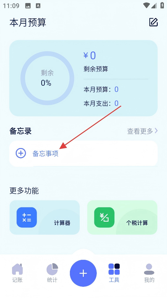 2、在工具页面点击【备忘事项】,弹出备忘录输入框。