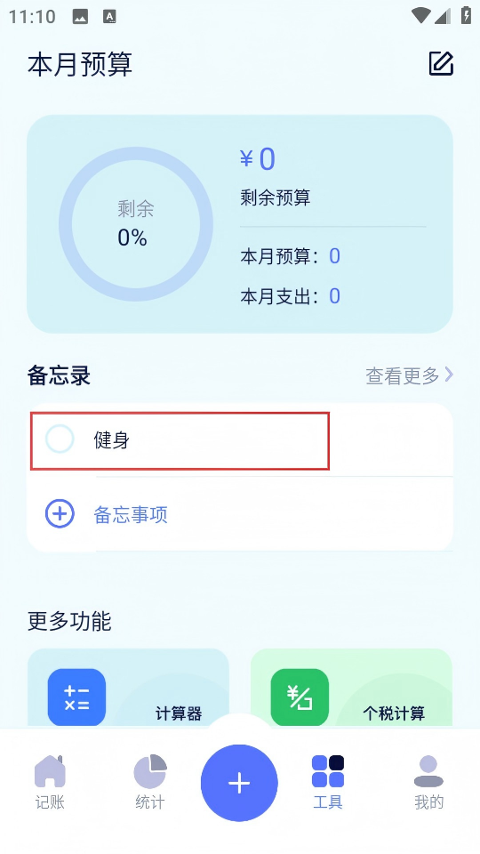 4、内置实用工具,包含科学计算器、个税起算器与备忘录,可轻松完成数据计算,同时记录重要事项,满足记账外的日常需求。