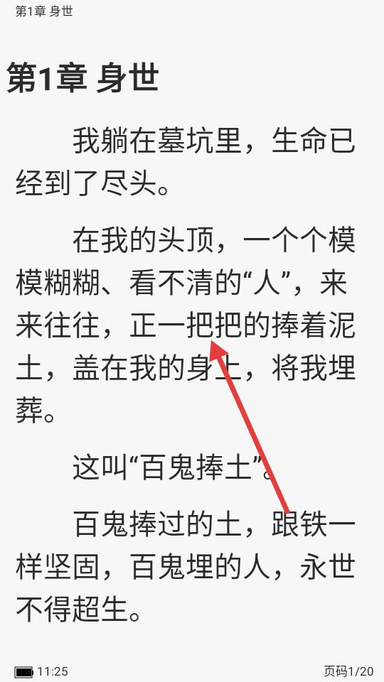 4、在阅读页面,可查看作品章节内容,如第1章《身世》的具体文字内容,进行阅读体验。