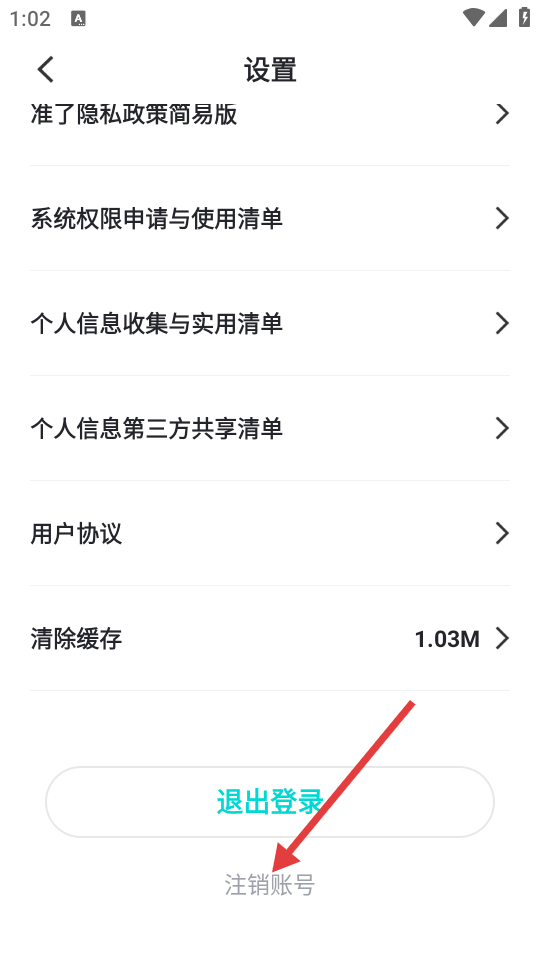 3、在设置页面,点击【注销账号】选项,进入验证身份页面。