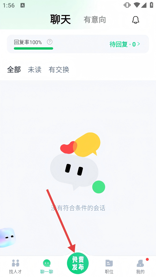 1、在APP界面,点击底部【免费发布】,进入发布全职职位流程。