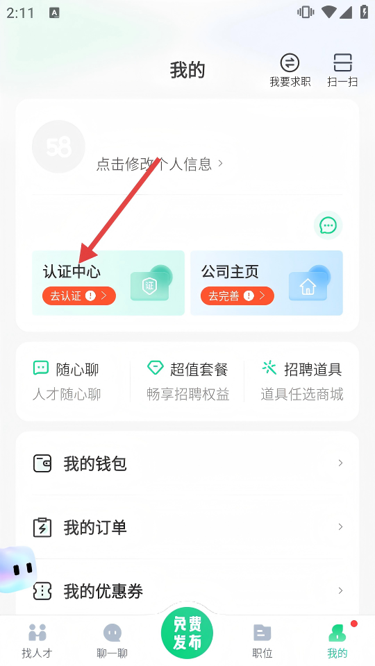 2、在个人中心,点击【认证中心】,进入认证流程。