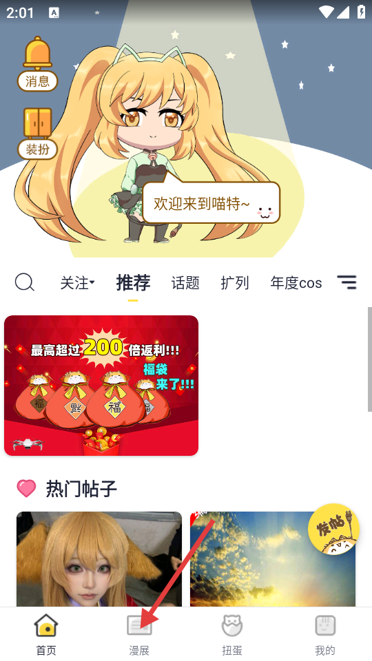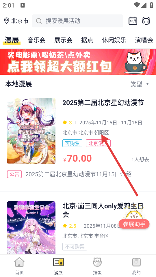 1、点击首页底部【漫展】选项,进入漫展列表页面。