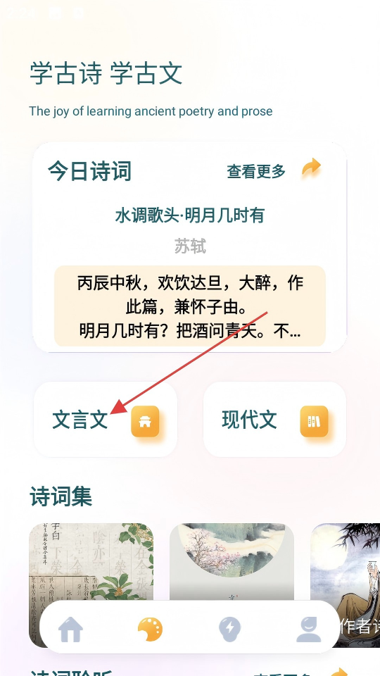 1、点击底部画板样式图标,进入“学古诗-学古文”板块。
