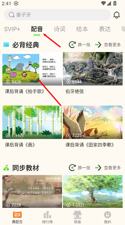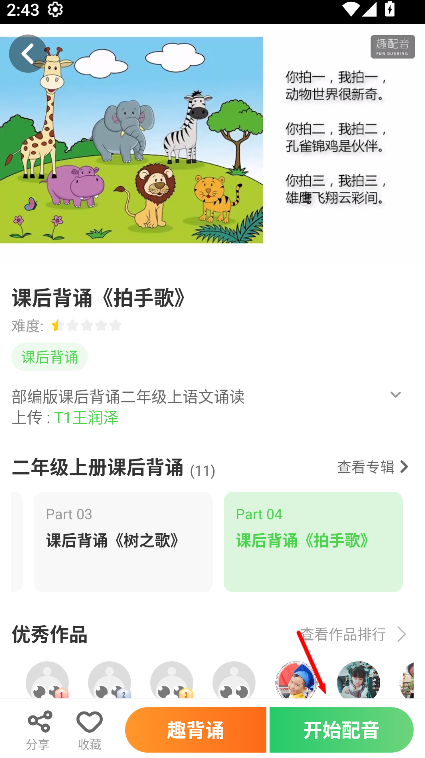 1、课文配音功能支持选择教材内容进行角色配音,通过朗读训练提升语音表达与语文理解能力。