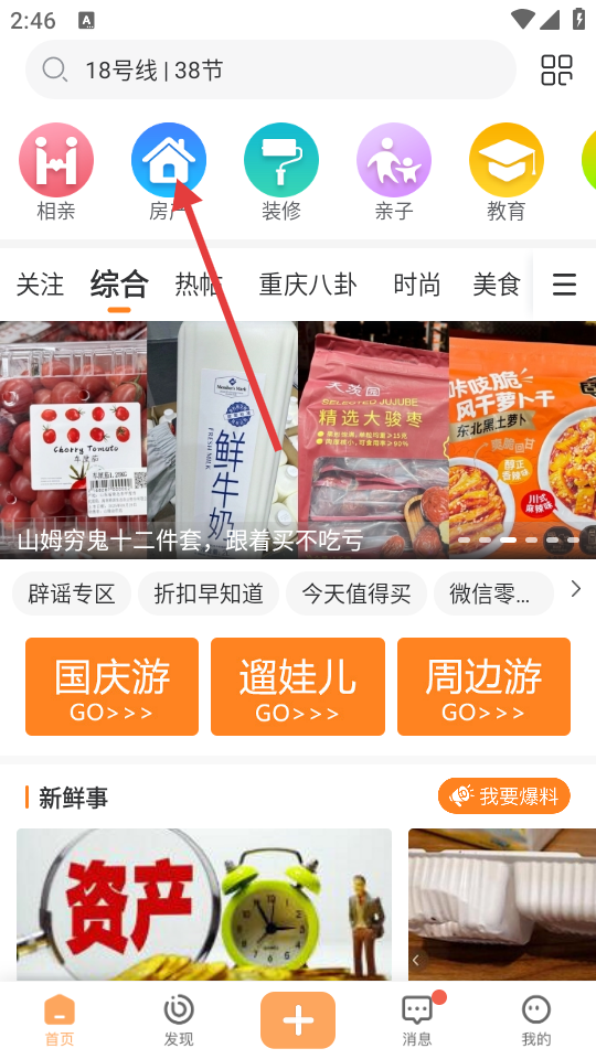 1、在软件首页,点击【房产】图标,进入房产相关板块。