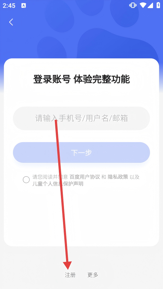 2、在登录账号页面,点击【注册】,进入百度账号注册流程。