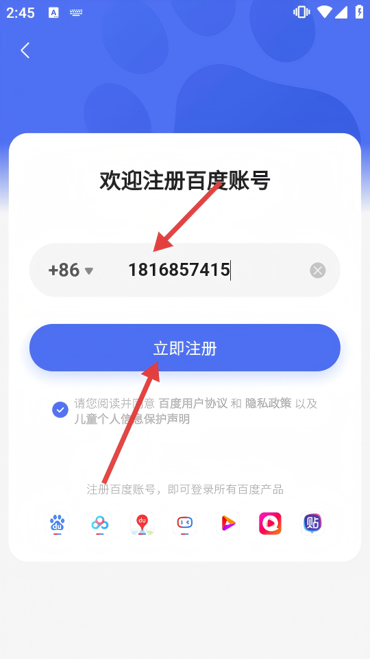 3、输入手机号码后,点击【立即注册】,进入账号管理环节。