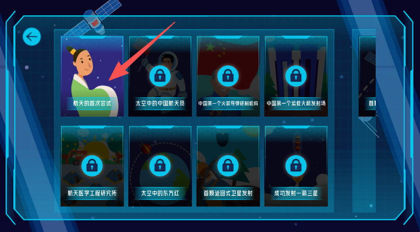 2、进入主题内容(如航天的首次尝试),参与答题互动。