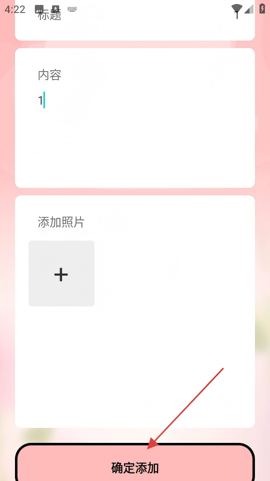 3、在编辑页面填写内容、添加照片后,点击【确定添加】。