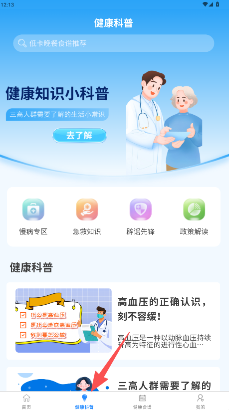 2、进入慢病专区,选择科普内容,查看图文讲解。