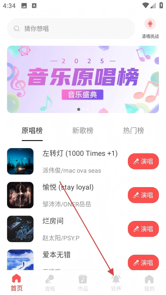 1、仅设首页、清唱、作品、铃声、我的5大核心板块,功能分类清晰,新手无需学习即可快速上手。
