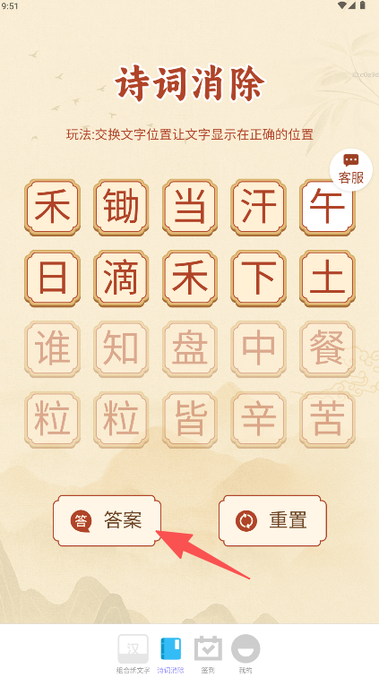 1、在首页底部导航栏点击“诗词消除”进入界面。