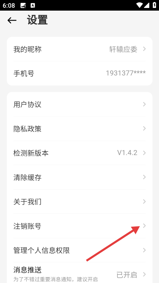 3、在设置界面,点击【注销账号】选项,进入注销账号确认页面。