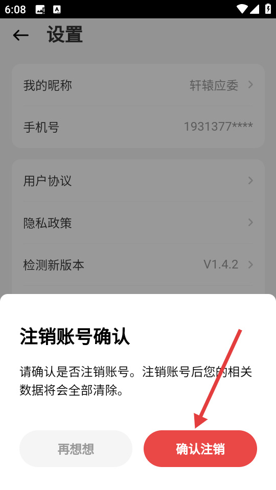 4、在注销账号确认页面,点击【确认注销】按钮,可进行账号注销操作。
