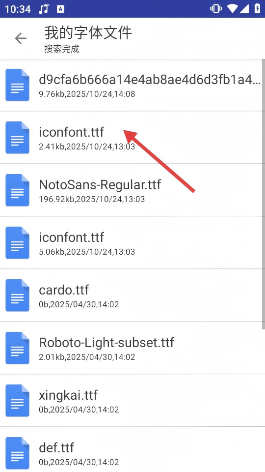 1、点击【导入字体】,进入我的字体文件页面,可选择要导入的字体文件。