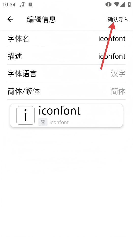 3、在编辑信息页点击【确认导入】,完成字体导入操作。