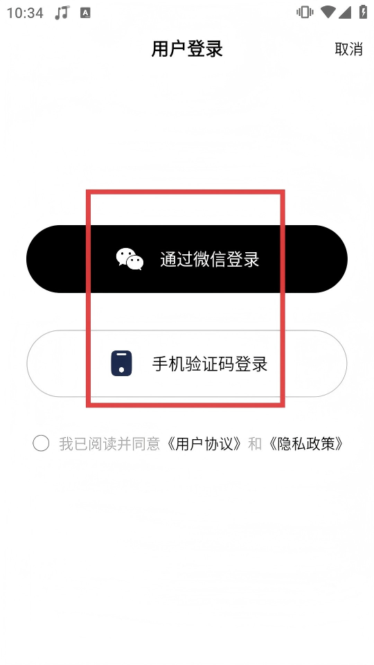 4、在用户登录页选择【通过微信登录】或【手机验证码登录】,勾选协议后完成登录。