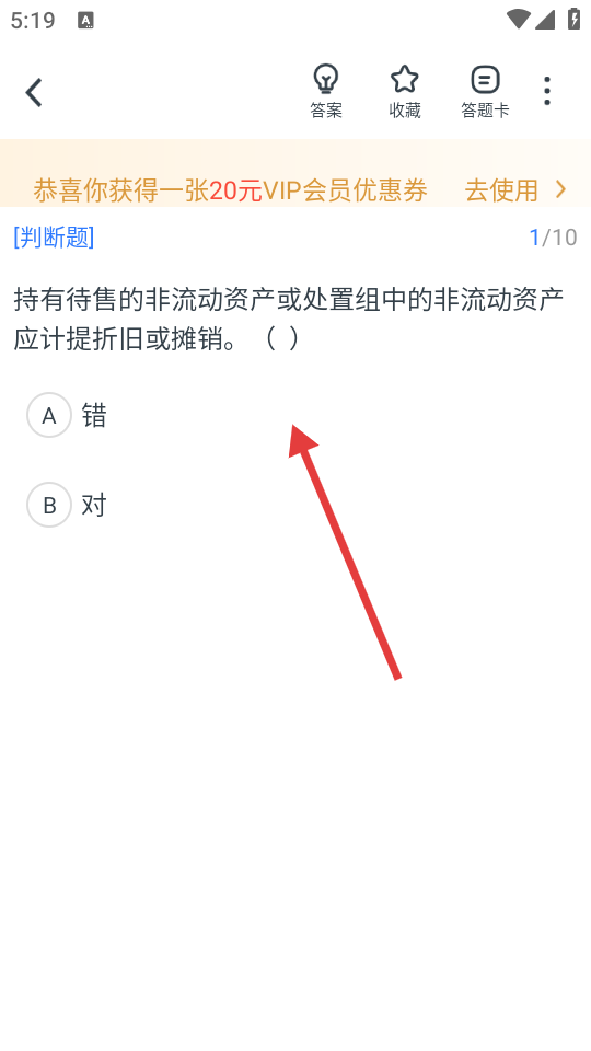 3、进入题目页面后,针对判断题等题型进行作答,如判断持有待售的非流动资产是否应计提折旧或摊销。