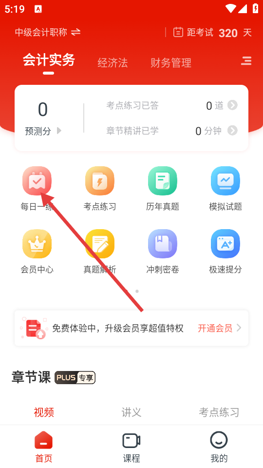 1、在软件首页,点击【每日一练】图标,进入每日一练板块。