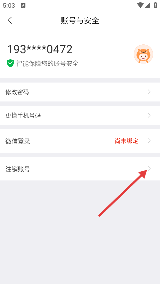 4、在账号与安全页面,点击【注销账号】选项,可进行账号注销操作。