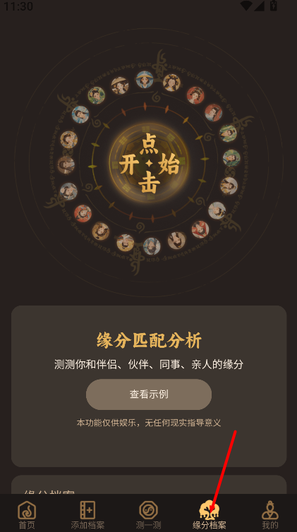 3、完成信息填写后,可查看生成的缘分档案,并进行缘分匹配与分析查询。