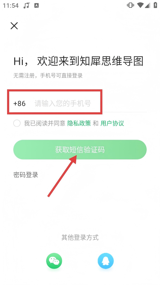 4、在登录页面输入手机号,勾选同意协议后点击【获取短信验证码】,完成登录操作以使用模板。