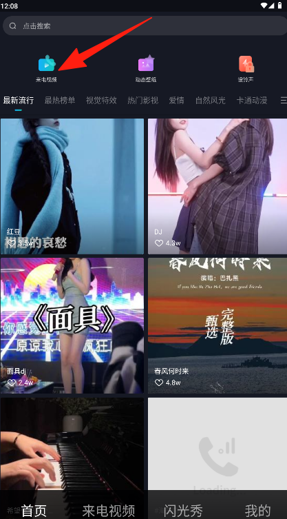 1、在软件首页浏览或通过分类查找喜欢的"来电视频"资源。