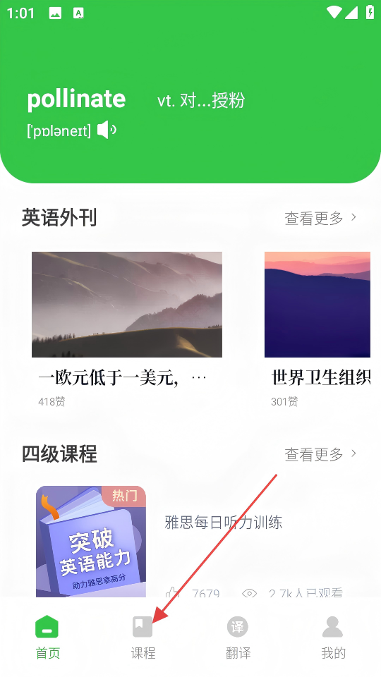 1、在软件首页点击底部【课程】按钮,进入课程选择页面。