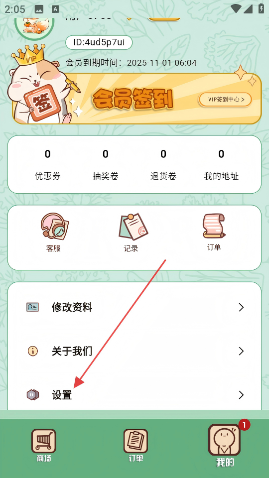 2、在个人页面点击【设置】选项,进入设置中心页面,可进行账户相关设置。