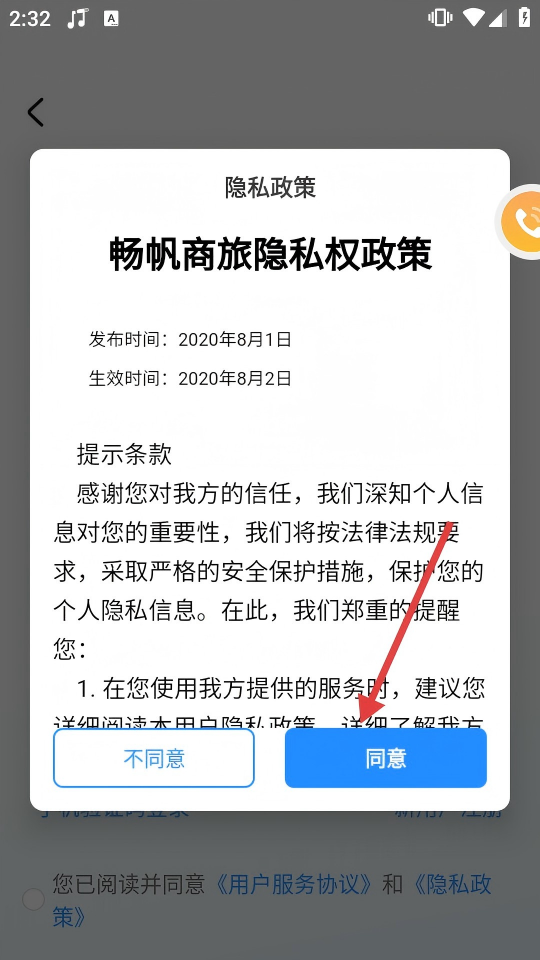 1、在隐私政策弹窗中点击【同意】,进入登录页面。